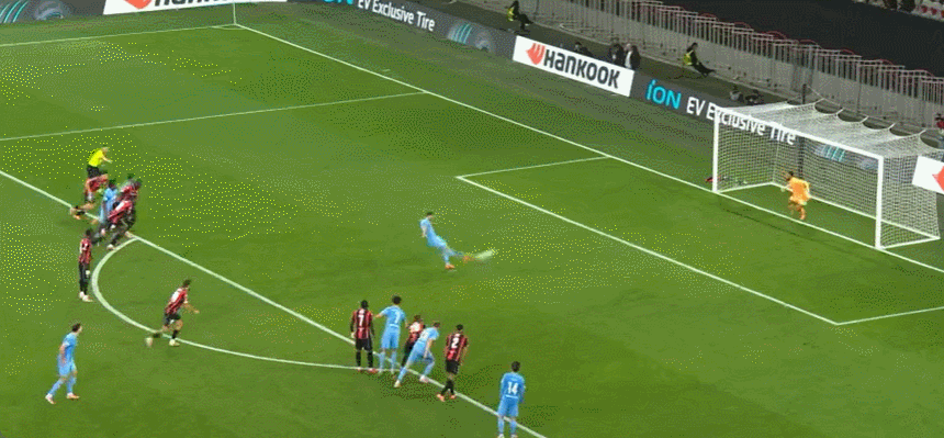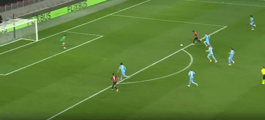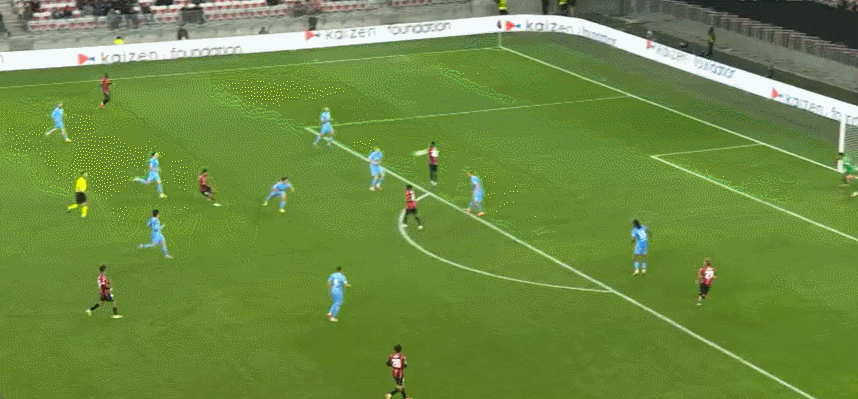 63’尼斯围攻对手,戈维亚吊射击中横梁,萨梅德跟进射门稍稍高出横梁