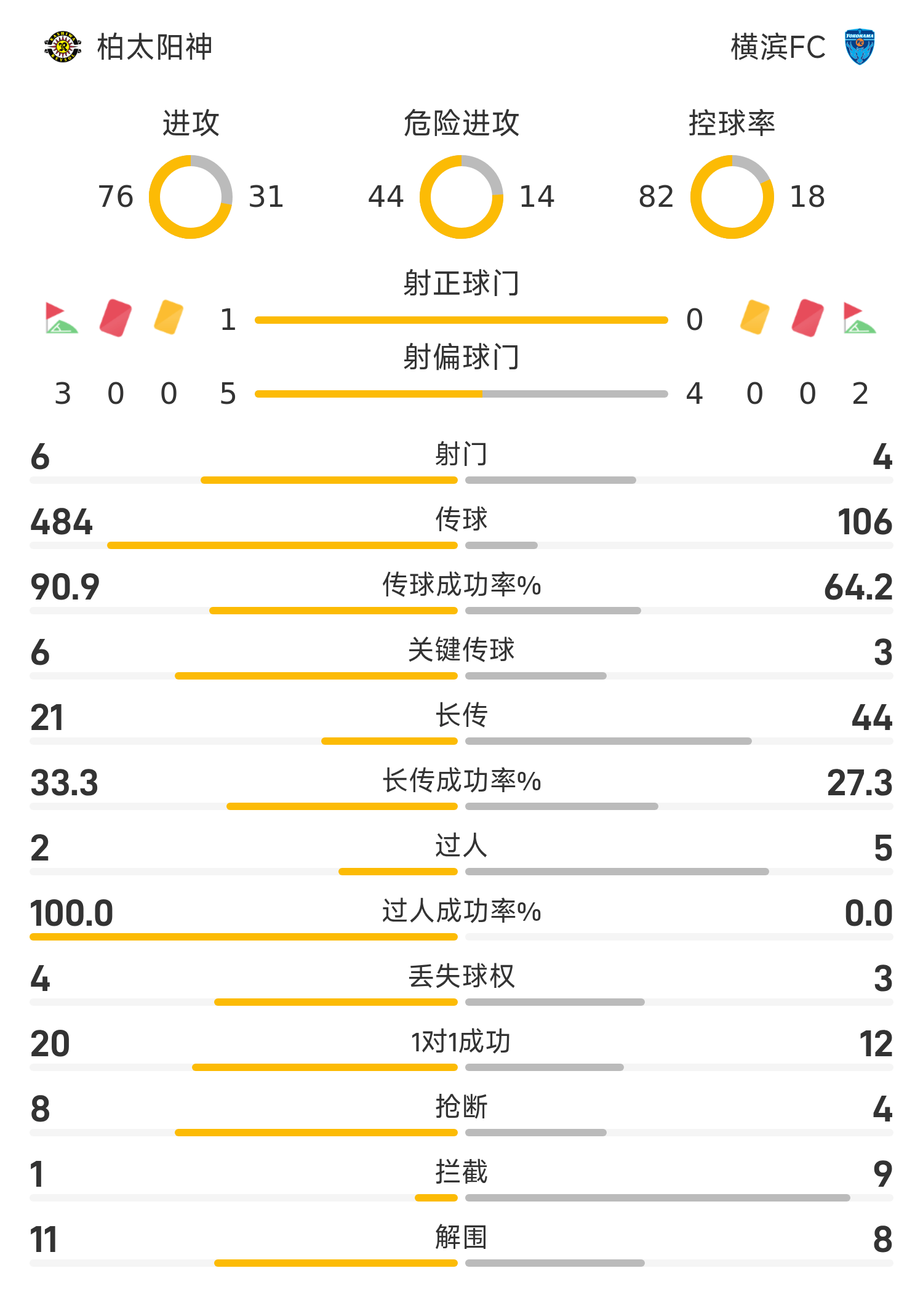 日职联半场:两队机会寥寥,柏太阳神0-0横滨FC