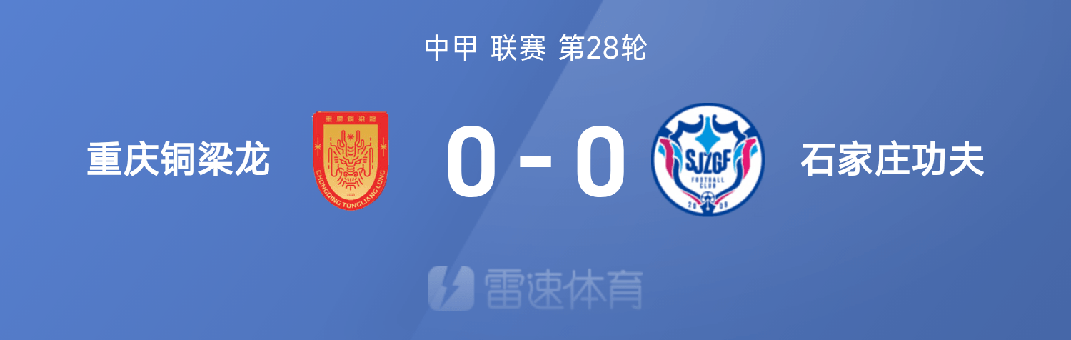 6686体育官网10月26日讯 25赛季中甲联赛事第28轮,重庆铜梁龙0-0互交白卷闷平石家庄功夫。