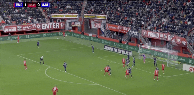 13’特温特开出战略边线球,范沃尔夫斯温克尔后点顶球偏出立柱