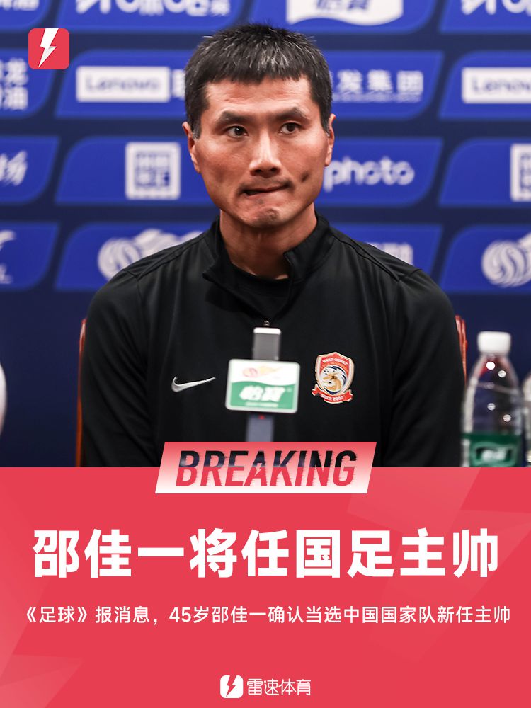6686体育官网11月5日讯 据《足球报》 报道,前中国男足国脚、助教&现青岛西海岸主帅邵佳一确认当选中国男足主帅。