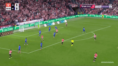 54’古鲁泽塔三秒区内顶球攻门,皮球被守门员扑住