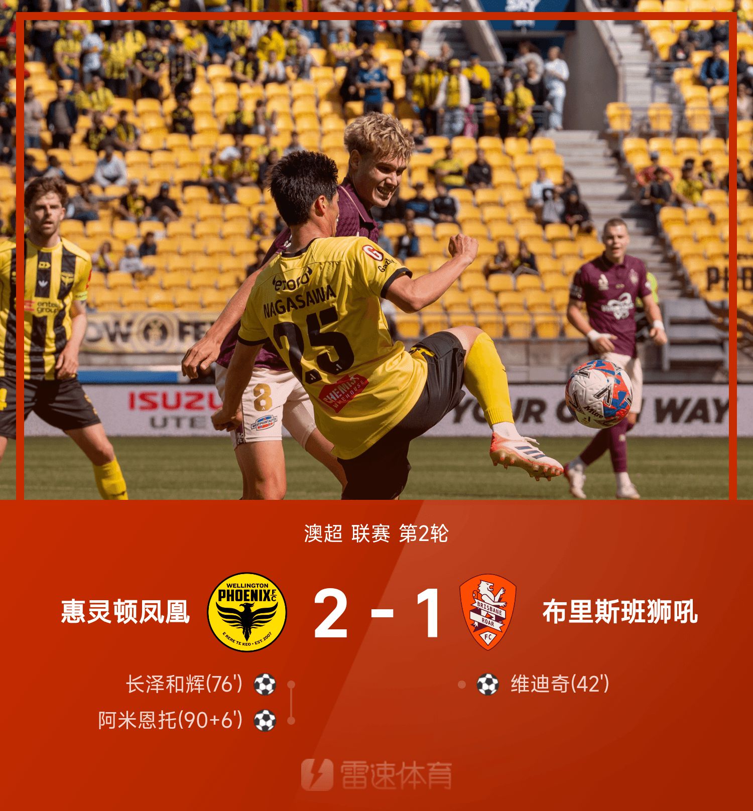 6686体育官网10月26日讯 25/26赛季澳超联赛事第2轮,惠灵顿凤凰2-1战胜布里斯班狮吼。上半场竞赛,维迪奇抓住詹姆斯差错机会取得进球。下半场长泽和辉抢点破门扳平赛果分,阿米恩托补时最后一投弑旧主。