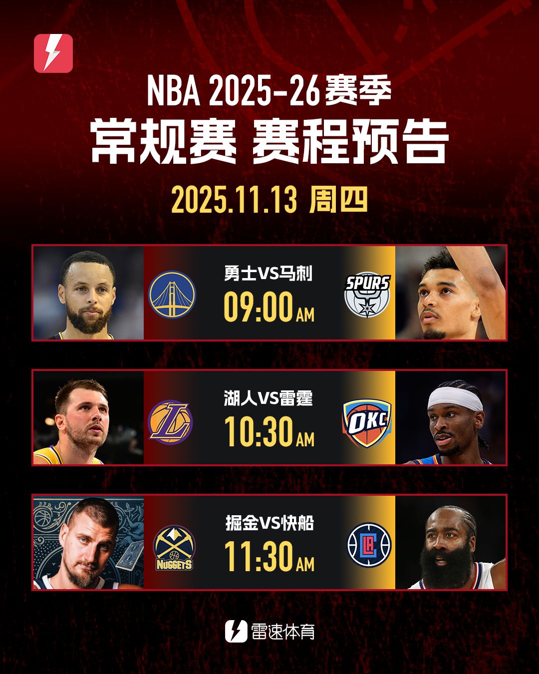 6686体育官网11月12日讯 明日NBA迎来超级竞赛日,其中看点多多,杨瀚森所在的开拓者连续客队场作战,而勇士、雷霆、快船、掘金等队将迎来背靠背的作战。
