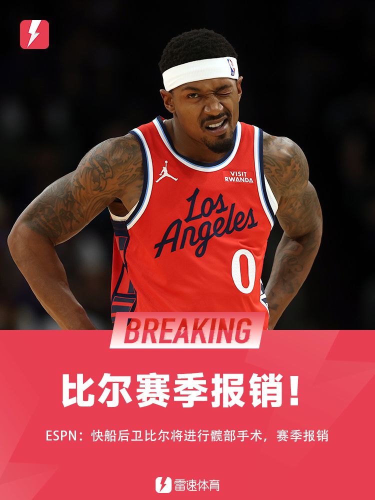 Shams:快船后卫比尔髋部骨折将进行手术,赛季报销