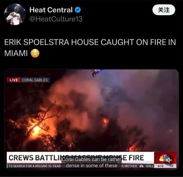 6686体育官网11月6日讯 今日,据美媒Heat Central报道,热火主帅斯波尔斯特拉家中突发严重火灾,NBC在报道中可以确定这就是这位名帅的家。