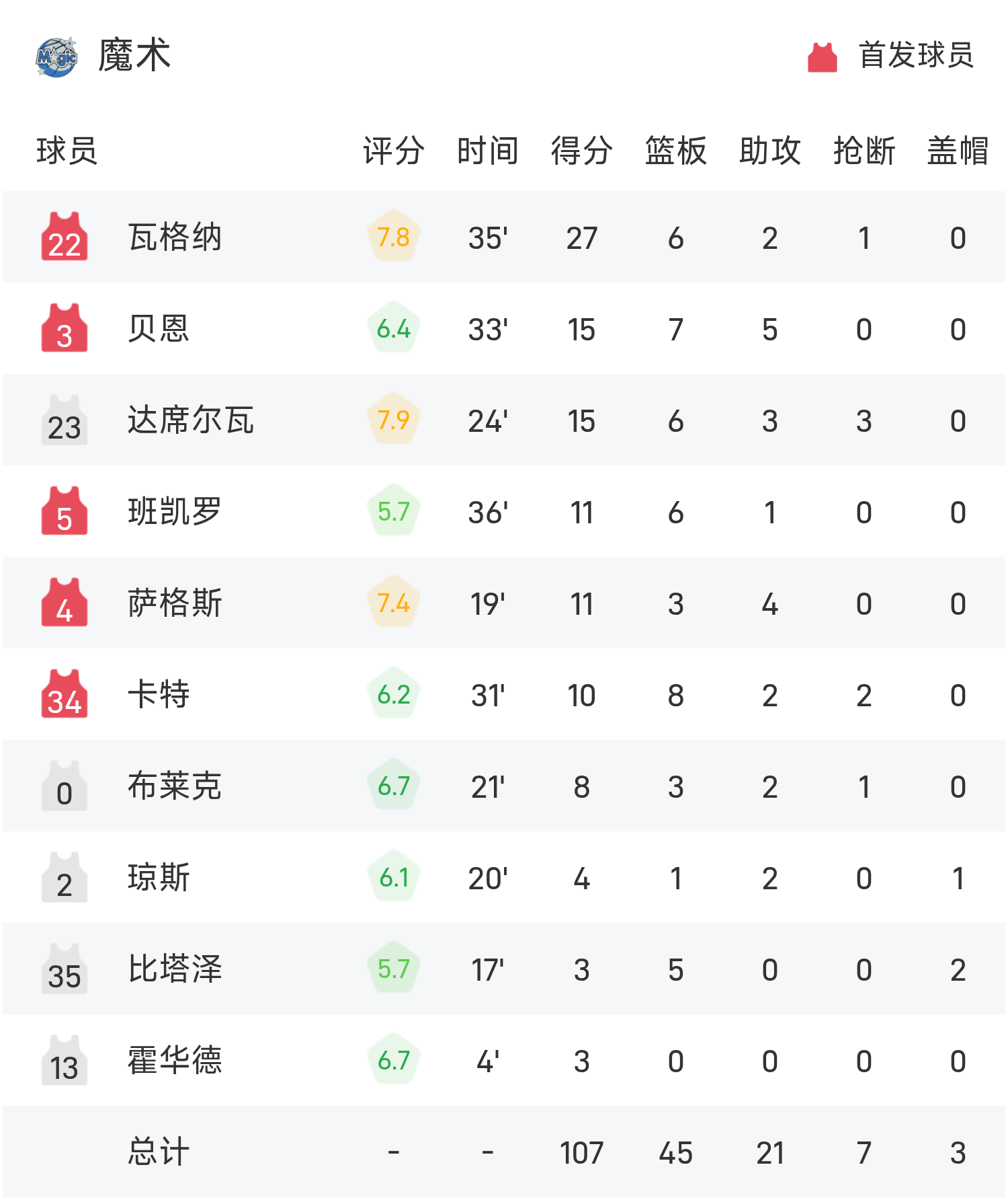 6686体育官网10月25日讯 25/26赛季NBA 常规赛,魔术对阵老鹰。双方全场战罢,魔术107-111不敌老鹰。特雷杨得到25分1板6助率队取胜,瓦格纳空砍全场最高的27分6板2助。