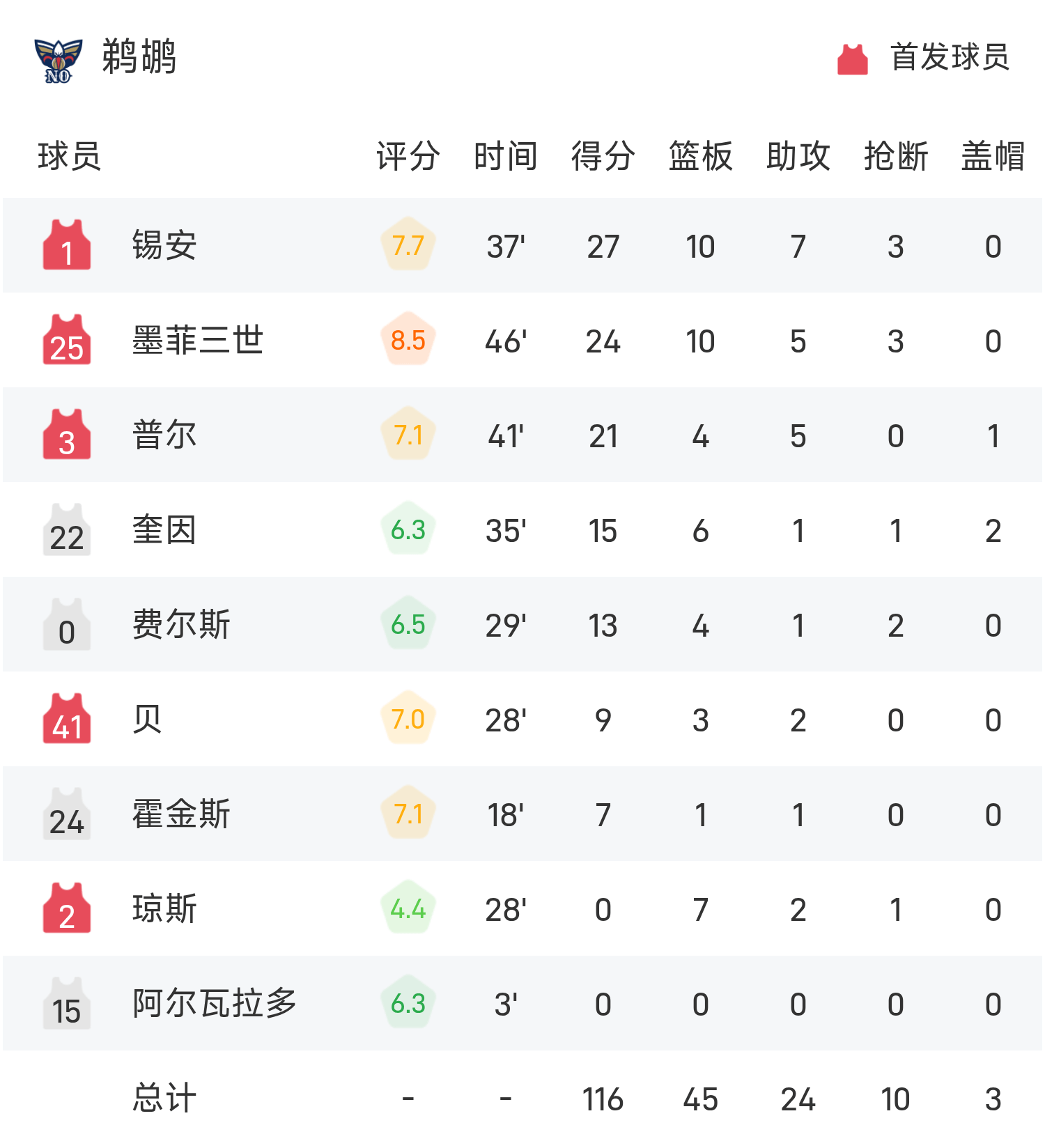 6686体育官网10月25日讯 25/26赛季NBA 常规赛,鹈鹕对阵马刺。双方全场战罢,鹈鹕116-120不敌马刺。文班亚马砍下全场最高的29分11板2助,率领马刺胜利取胜。